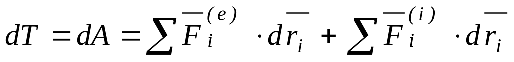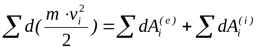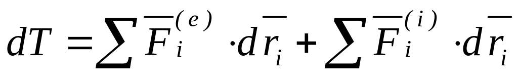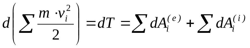 Теорема. Дифференциал кинетической энергии системы равен сумме элементарных работ всех внешних и внутренних сил, действующих на систему.