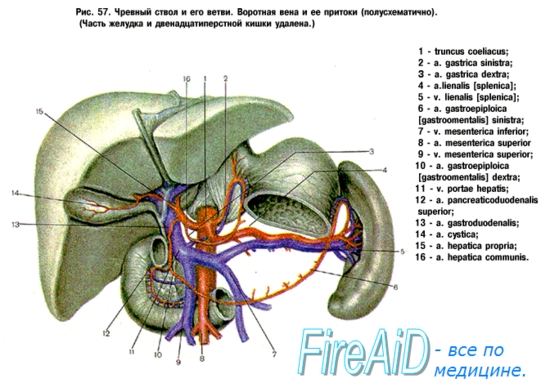 Питание печени происходит за счет a. hepatica propria, но в четверти случаев и от левой желудочной артерии.
