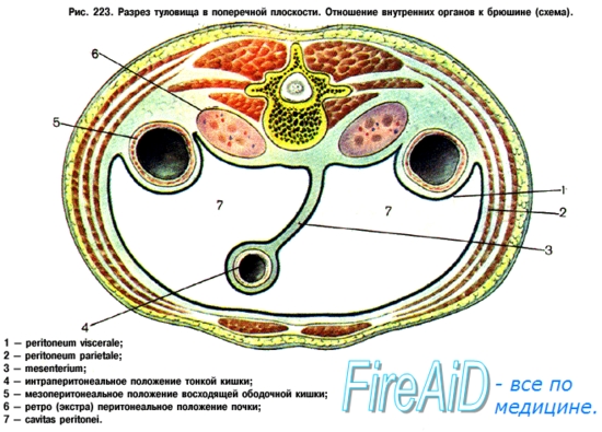 Париетальная брюшина выстилает непрерывным слоем изнутри переднюю и боковые стенки живота и затем продолжается на диафрагму и заднюю брюшную стенку. Здесь она встречается с внутренностями и, заворачиваясь на последние, непосредственно переходит в покрывающую их висцеральную брюшину.