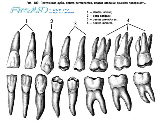 Принадлежность отдельно взятого зуба к верхней или нижней челюсти определяется формой коронки, а также формой и числом корней. Поэтому необходимо знать форму коронки и число корней не только для определенных групп зубов, но и для каждого отдельного зуба данной группы.