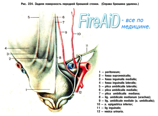 Под брюшной полостью, cavitas abdominis, (греч. lapara — чрево, отсюда лапаротомия — операция вскрытия живота), разумеется пространство, находящееся в туловище ниже диафрагмы и заполненное брюшными органами. Диафрагма, служа верхней стенкой брюшной полости, отделяет ее от грудной; передняя стенка образуется сухожильными растяжениями трех широких мышц живота и прямыми мышцами живота; в состав боковых стенок живота входят мышечные части трех широких мышц живота, а задней стенкой служат поясничная часть позвоночного столба, m. psoas major, т. quadratus lumborum; внизу брюшная полость переходит в полость таза, cavitas pelvis. Тазовая полость ограничена сзади передней поверхностью крестца, покрытой по сторонам грушевидными мышцами, а спереди и с боков — частями тазовых костей с лежащими на них внутренними запирательными мышцами, покрытыми изнутри фасциями. Дном тазовой полости служит diaphragma pelvis, образованная двумя парами мышц: mm. levatores ani и mm. coccygei (см. ниже «Мышцы промежности»). Кнутри от мышечных слоев брюшная полость и полость таза выстланы фасцией, которая по областям делится на следующие отделы: fascia transversalis выстилает внутреннюю поверхность m. transversa abdominis и затем переходит на стенки таза в виде fascia pelvis, далее на диафрагму таза, где называется fascia diaphragmatis pelvis superior; она покрывает также нижнюю поверхность тазовой диафрагмы в ^виде fascia diaphragmatis pelvis inferior; fascia iliaca покрывает m. psoas и m. iliacus. Для определения положения органов брюшной полости обычно пользуются делением живота на области (см. рис. 4). Брюшная полость разделяется на полость брюшины, cavitas peritonei, и забрюшинное пространство, spatium retroperitoneale. Брюшинная полость выстлана серозной оболочкой, носящей название брюшины, peritoneum, переходящей также в большей или меньшей степени и на брюшные внутренности (см. ниже «Брюшина»). Органы брюшной полости, развиваясь между брюшиной и стенкой брюшной полости (преимущественно задней), при своем росте отходят от стенки, врастают в брюшину и вытягивают ее за собой, так что в результате получается серозная складка, состоящая из двух листков. Подобные складки брюшины, переходящие со стенки брюшной полости на части кишечного канала, носят название брыжейки, mesenterium, а переходящие со стенки на орган (например, печень) — связки, ligamentum. Если орган со всех сторон облегается брюшиной, говорят об интраперитонеальном положении его (например, тонкая кишка) (рис. 123); мезоперитонеальным положением называется покрытие органа брюшиной с трех сторон (с одной стороны он лишен покрова, например печень). Если орган покрыт брюшиной только спереди, то такое положение называется экстраперитонеальным (например, почки). Будучи гладкой благодаря покрывающему ее эпителиальному покрову и влажной от присутствия капиллярного слоя серозной жидкости, брюшина в высокой степени облегчает перемещение органов относительно друг друга, устраняя трение между соприкасающимися поверхностями. Более детальные данные о брюшине будут приведены при описании органов брюшной полости и в отдельном разделе о брюшине.
