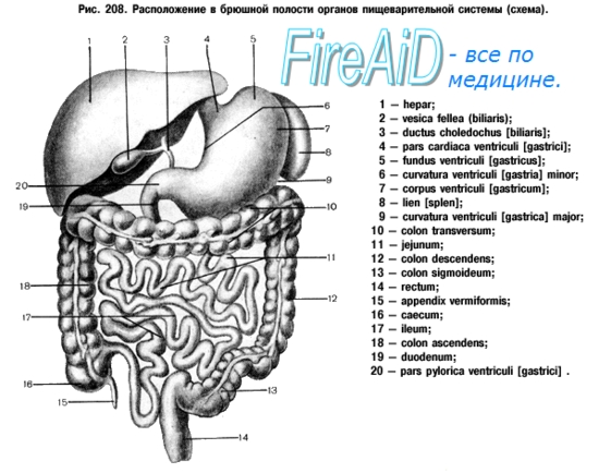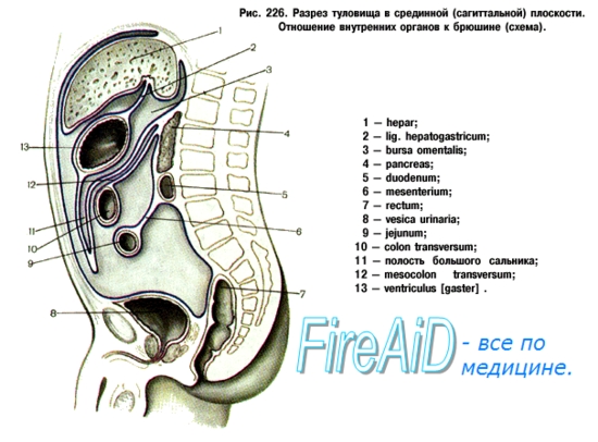 Начиная с желудка, отделы пищеварительного тракта вместе с его большими железами (печень, поджелудочная железа), а также селезенка и мочеполовая система расположены в брюшной полости и в полости таза.