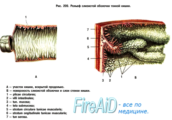 У живого человека длина тонкой кишки не превышает 2,7 м и чрезвычайно изменчива. Она зависит не только от пола, возраста и физического развития индвидуума, но также и от тонуса мускулатуры кишки, величины внутрибрюшного давления, характера питания и даже от температуры тела. В тонкой кишке совершаются механическая (продвижение) и дальнейшая химическая обработка пищи в условиях щелочной реакции, а также всасывание питательных веществ. Соответственно этому здесь имеются специальные приспособления для выделения пищеварительных соков (железы, расположенные как в стенке кишки, так и вне ее) и для всасывания переваренных веществ.