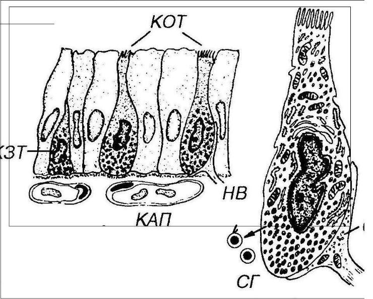 •Гормоны - в секреторных гранулах с плотной сердцевиной, размер гранул 100-500 нм.