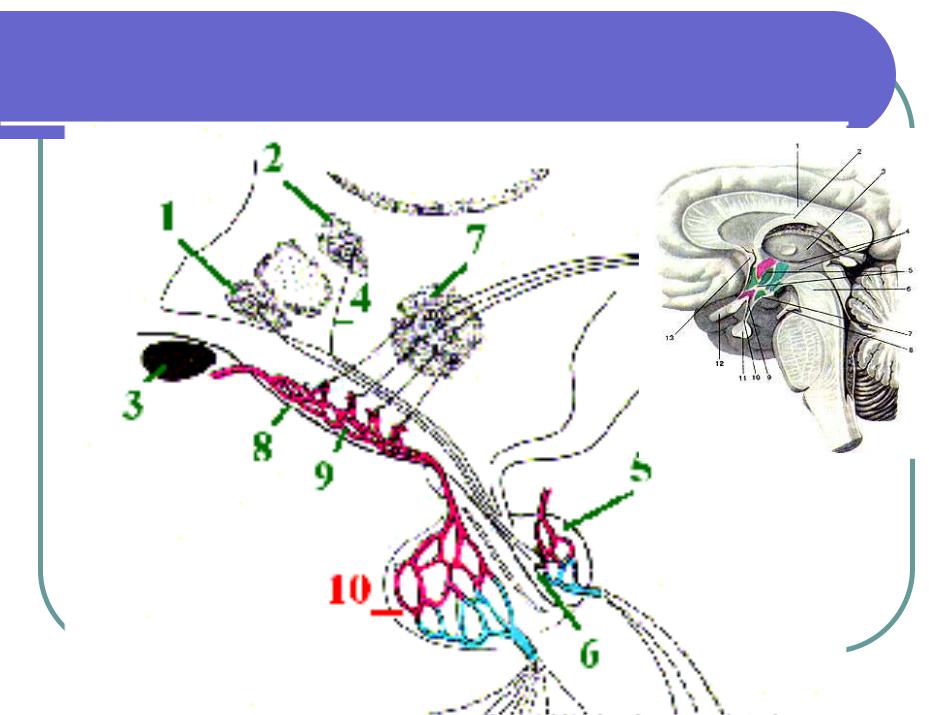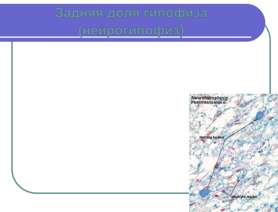 2.Гипофизарная ножка: глия и волокна нейросекреторных клеток.