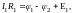 Под алгебраической суммой произведений понимается следующее. Если направление тока Ik совпадает с направлением обхода, то берётся о знаком «+», если направление тока Ik противоположно направлению обхода то перед в уравнении (16) ставится знак «–». Э.д.с. Еk в правой части уравнения (16) берётся со знаком «+», если источник в направлении обхода проходится от «минусого» полюса к «плюсовому», и знак «–», если источник в направлении обхода проходится от «плюсового» полюса к «минусовому».