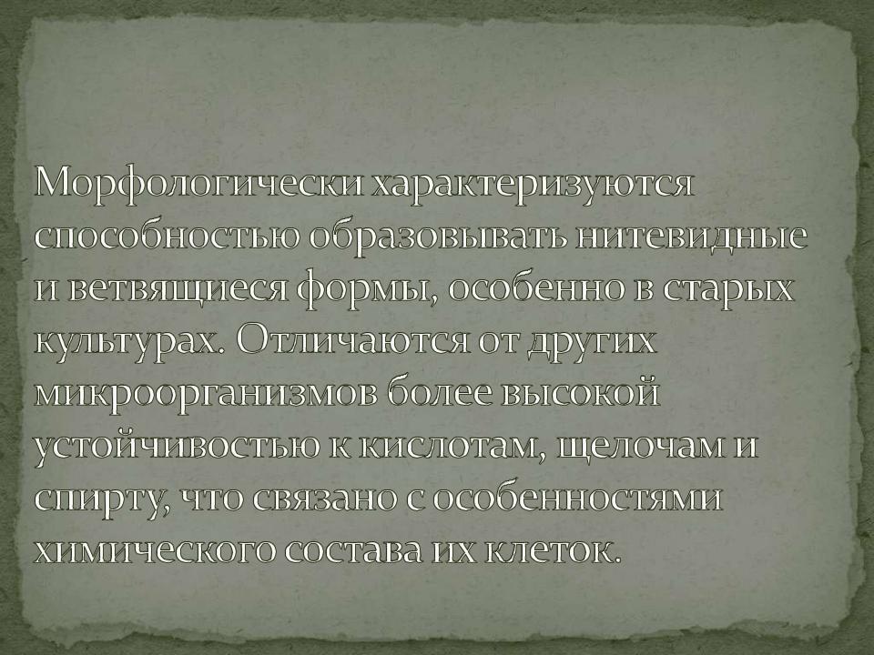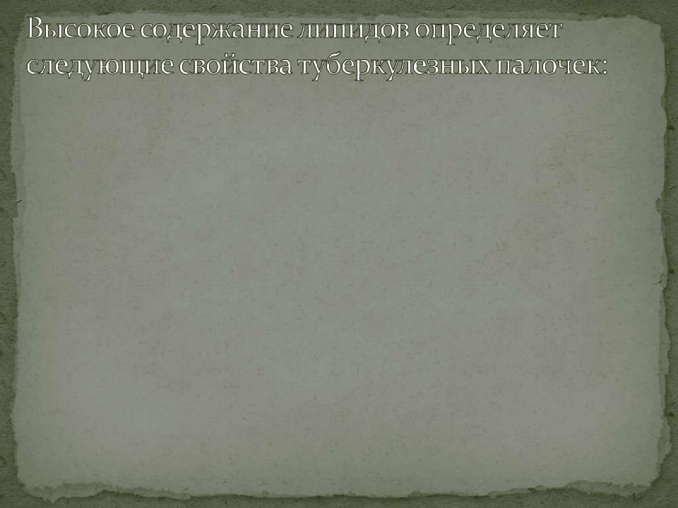 микобактерии объясняются высоким содержанием липидов в клеточной стенке, составляющих до 40 % сухого остатка клеток.
