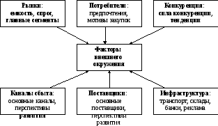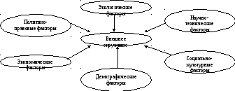 Ни одно предприятие не функционирует в вакууме, а имеет достаточно дифференцированное внешнее окружение, которое характеризуется значительной динамичностью. Факторы внешнего окружения следует рассматривать как стратегические и учитывать при разработке рыночной стратегии предприятия.