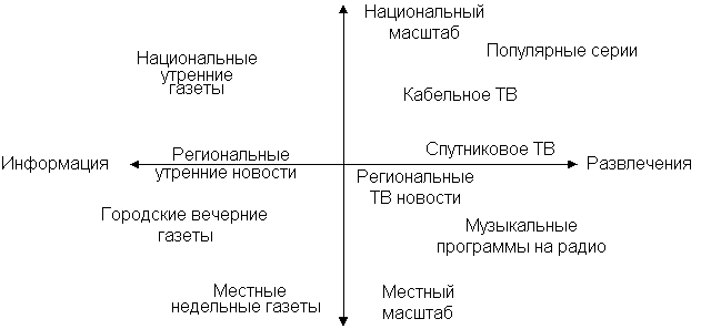 Рис. 5.4 - . Позиционирование сред для рекламных сообщений