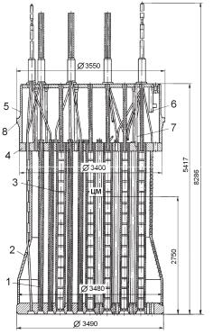 предотвращает их всплытие. В пеналах, закрепленных к верхней обечайке БЗТ, установлены контейнеры со сборками «тепловых» образцов-свидетелей корпусной стали.