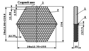 Нижняя решетка служит опорой для твэлов, а также выполняет функции фильтра и стабилизатора потока теплоносителя на входе в кассету. Общий вид нижней решетки представлен на рис. 2.25.