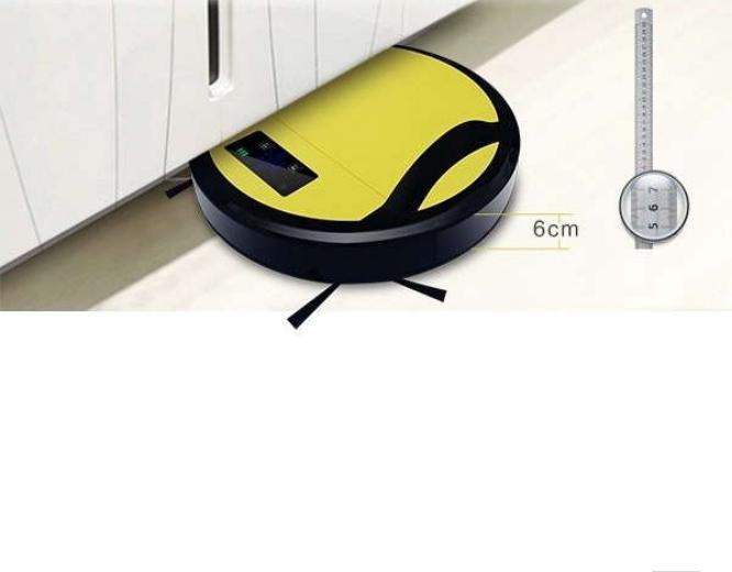 Высота робота - 6 см. Он проходит под креслами на ножках, забирается под