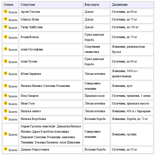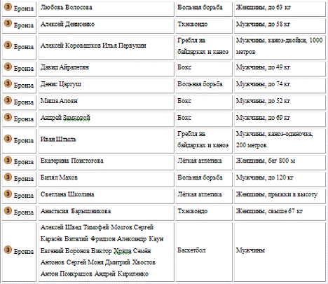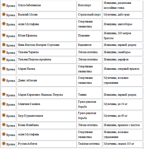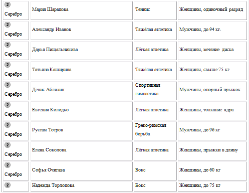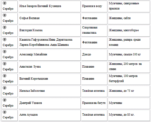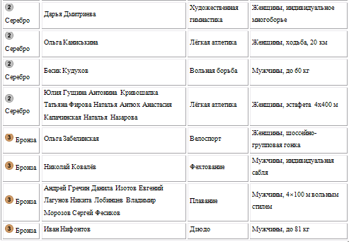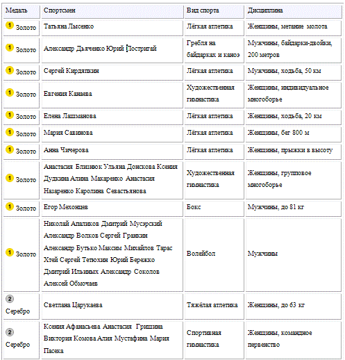 Спортсмены РФ, удостоенные медалей на XXX летних Олимпийских играх
