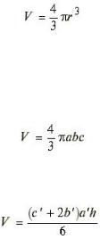 радиус; hЙ −— высота;;аa, bЬ, с −- полуоси эллипсоида;;а’,a' b'Б’, c'с'-—− сторонороны