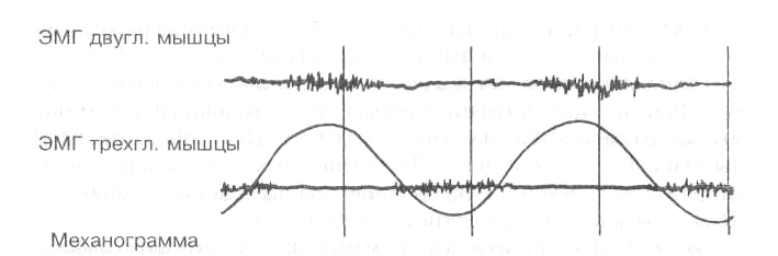 Рисунок 8.3 – Электромиограмма мышц-антагонистов при циклической работе