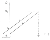 Если зафиксировать произвольный момент времени tx, то ему будут соответствовать ординаты Qхр и Qхр, которые, соответственно, покажут, сколько материала (Qхр) к этому моменту было израсходовано и получено (Qхn,) на склад. Разница между ними px = Qxn - Qхп,, покажет, сколько материала на данный момент находится на складе.