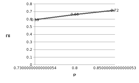 Вывод: В зависимости от разных вероятностей безотказной работы техники мы выяснили каким образом будет меняться производительность строительной системы в целом и как это будет влиять на сроки строительства. Таким образом получаем, что при вероятности безотказной работы 0,73 - вероятность безотказности нашей системы будет обеспечена на 81%, а срок выполнения работ будет равен 148 дням, при вероятности безотказной работы 0,8 - вероятность безотказности нашей системы будет обеспечена на 83%, а срок выполнения работ будет равен 132 дням, при вероятности безотказной работы 0,85 - вероятность безотказности нашей системы будет обеспечена на 84%, а срок выполнения работ будет равен 122 дням, исходя из полученных данных и руководствуясь графиками мы можем определить, что чем больше вероятность безотказной работы, тем выше надежность безотказной работы и тем меньше сроки строительства.