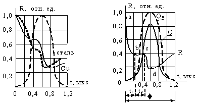 Для всех исследованных металлов величина R уменьшается по мере нарастания мгновенного значения интенсивности излучения в пичке и достигает минимума в момент, совпадающий с максимумом пичка или непосредственно следующий за ним. На всех графиках R(t) наблюдается точка перегиба. С увеличением плотности энергии Q изменения в величине R наступают раньше, а возрастание отражения во второй части импульса излучения замедляется, при этом общий вид зависимости R(t) остается неизменным.
