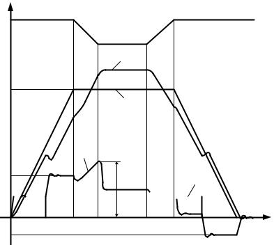 снижается до минимального значения, ток растет до максимального значения, скорость продолжает расти от