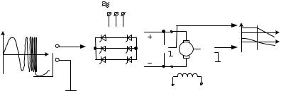 Функциональная схема состоит из генератора синусоидального напряжения (ГСН), тиристорного преобразователя (ТП), двигателя постоянного тока независимого возбуждения (М) на вход которого подаются сигналы входного напряжение якоря и скорости. В качестве датчика скорости может служить либо малоинерционный тахогенератор, либо импульсный датчик ДИ. Для начала на вход ТП генерируется синусоидальное напряжение управления низкой частоты с постоянной амплитудой. При этом двигатель попеременно вращается по часовой и против часовой стрелки, разгоняясь и останавливаясь. Максимальная амплитуда напряжения якоря двигателя при малых частотах должна соответствовать скорости холостого хода, для соответствующего напряжения. Амплитуда напряжения якоря не обязательно должна быть равна номинальному напряжению двигателя. Затем частота напряжения плавно увеличивается.