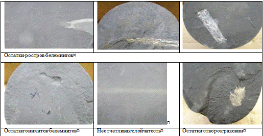 Породы очень плотные, окремненные, участками в них наблюдаются редкие фосфатизированные остатки онихитов белемнитов (рисунок 3.2), по всему слою присутствуют ростры белемнитов, сложенные кальцитом и иногда пиритом.