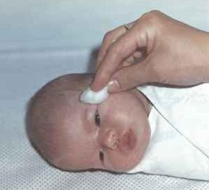 обязательная первичная обработка новорожденного с внесением за веки тетрациклиновой или эритромициновой мази для профилактики бленнореи (рисунок 2.45).