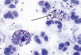 Бактериоскопическое исследование является наиболее распространенным методом диагностики гонореи, особенно у мужчин. При этом готовят два мазка, один из них окрашивают метиленовым синим, а другой - по Граму. При окраске метиленовым синим на фоне лейкоцитов и эпителиальных клеток, цитоплазма которых окрашена в бледно-голубой цвет, выделяются кокки интенсивно синего цвета. В мазке, окрашенном по Граму, на розовом фоне протоплазмы лейкоцитов выделяются гонококки ярко-розового цвета. В окрашенных препаратах наблюдается незавершенный фагоцитоз (рисунок 2.43).