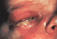 Особое значение имеет гонорея новорожденных. До 50% новорожденных заражается гонореей от больной матери при прохождении через родовые пути. В этом случае развивается офтальмия новорожденных (бленнорея, гонобленнорея, неонатальная гонококковая инфекция). Офтальмия новорожденных обнаруживается у ребенка на 2-3 день после рождения. Вначале она проявляется водянистыми желтоватыми выделениями из глаз. Через сутки отмечается сильная отечность и покраснение век, а выделения становятся мутными. Еще через 4-5 дней краснота век уменьшается, выделения приобретают гнойный характер (рисунок 2.42).