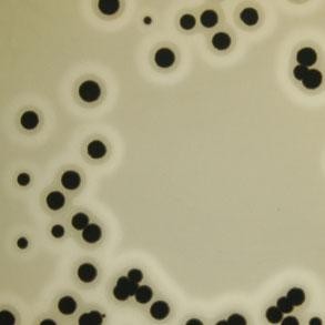 Для выделения и количественного учета S. aureus в пищевых продуктах используют среду Байрда-Паркера. Среда содержит яичный желток для выявления лецитиназы, хлорид лития и теллурит калия для подавления роста сопутствующей микрофлоры, пируват натрия и глицин для стимулирования роста стафилококков. На среде Байрда-Паркера формируются черные колонии стафилококков, вокруг которых образуются характерные зоны опалесценции в результате разложения лецитиназой яичного желтка (рисунок 1.40).