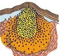Рисунок 1.35 – Схема образования и внешний вид абсцесса. Заимствовано из Интернет-ресурсов.