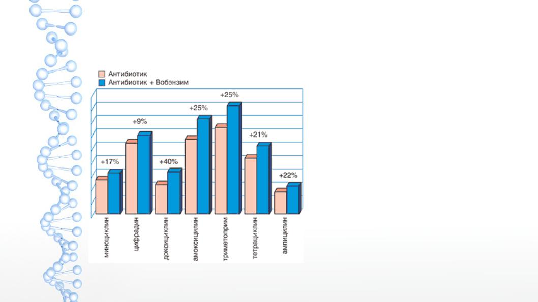 Рис. 1. Концентрация антибиотиков в сыворотке крови через 8 часов после приема препатата Вобэнзим