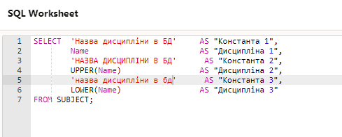 пятый столбец с именем «Константа3» содержит константу ’Название дисциплины строчными буквами: ’