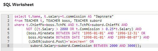 7) Вывести имена преподавателей и дату поступления их на работу, которые НЕ удовлетворяют следующему условию: