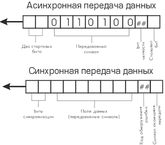 обнаружения ошибки и символ окончания передачи. При синхронной передаче данные