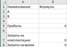 В ячейку B5 введём: = 3500*x+4900*y, B7: = 3*x+4*y, B8: = 0,25*x+0,5*y.