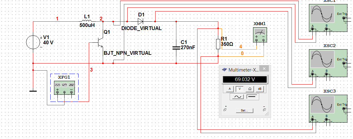 1. Для сборки в программе NI Multisim схемы НПН повышающего типа (Рисунок 1) произведём расчёт элементов силовой цепи.