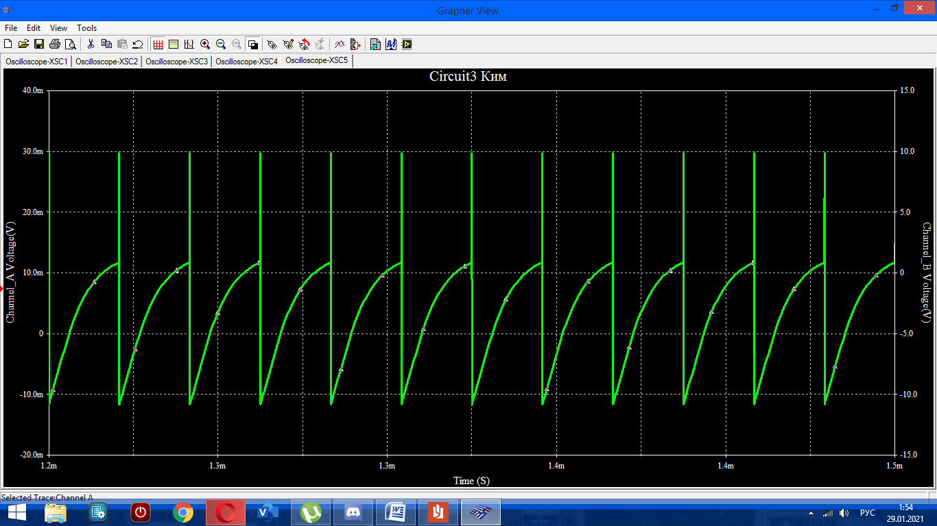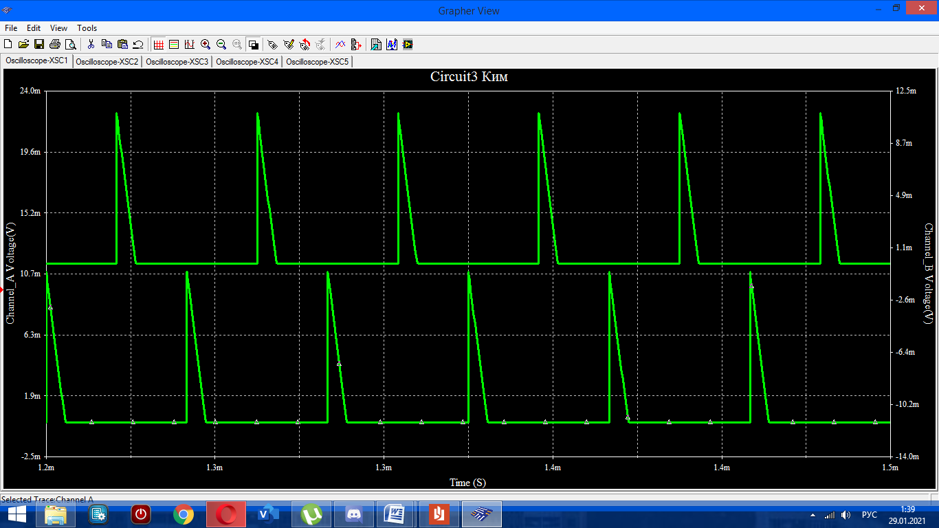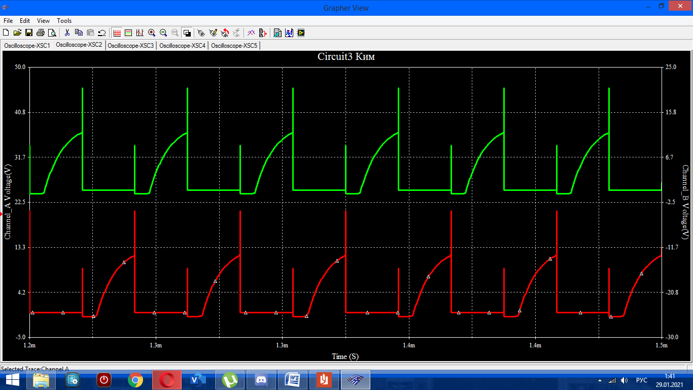 1.5 Напряжение на транзисторе и диоде: