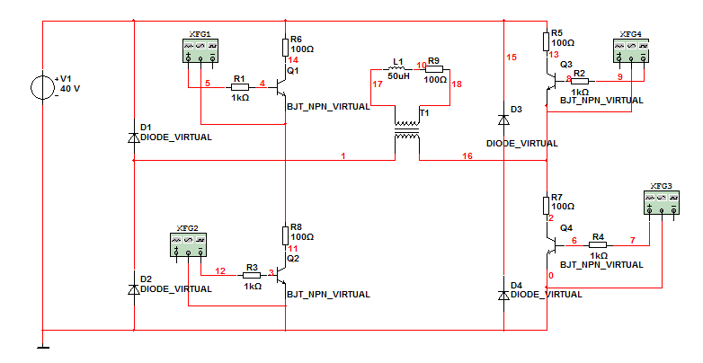 1. Для сборки в программе NI Multisim схемы инвертора напряжения (Рисунок 1) произведём расчёт элементов силовой цепи.