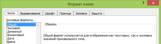 Перед занесением в таблицу исходных данных нужно задать ячейкам столбцов B, C и D нужные форматы данных. Формат данных ячейке можно задать при помощи вкладки «Число» панели «Главная» или при помощи вкладки «Число» окна «Формат ячеек». Для открытия этого окна выделите левой кнопкой мыши требуемые ячейки и щѐлкните на них правой кнопкой мыши. В появившемся контекстном меню выберите пункт «Формат ячеек».