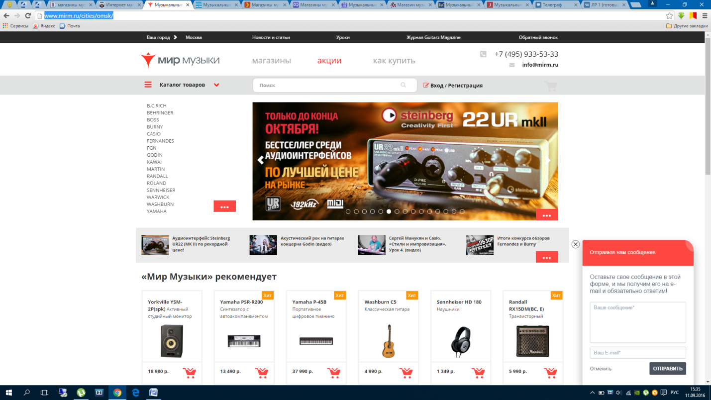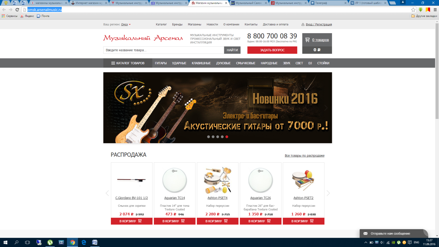 Свое исследование сайта Я начал бы с вкладки электронного каталога: гитары и аксессуары. |