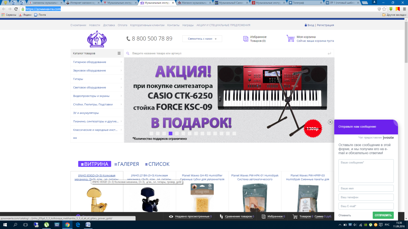 Электронный каталог музыкальных инструментов и товаров. Организован поиск по сайту. Помощь консультанта. |