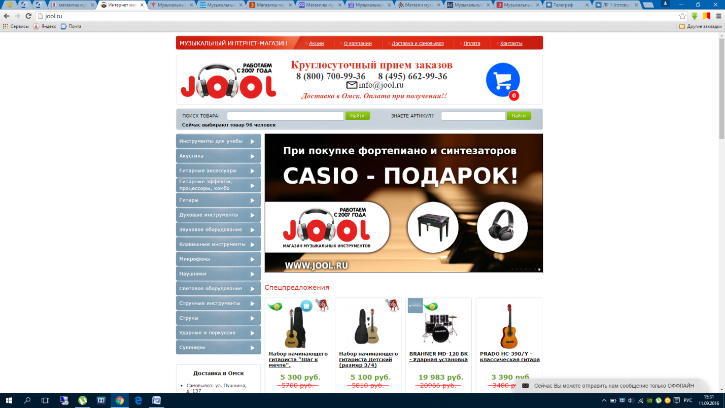 2. Непроработанный каталог музыкальных инструментов, также впечатление о сайте портит реклама. |