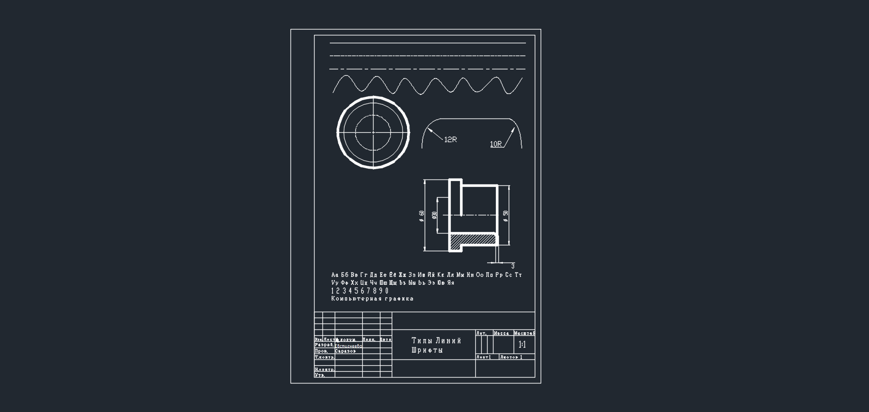 3. Для всех вариантов выполнить задание «Типы линий» по образцу.