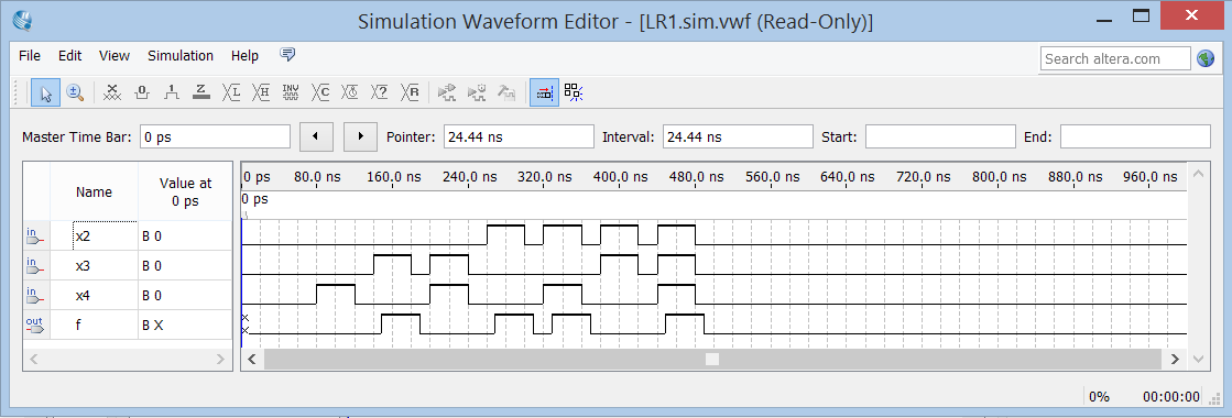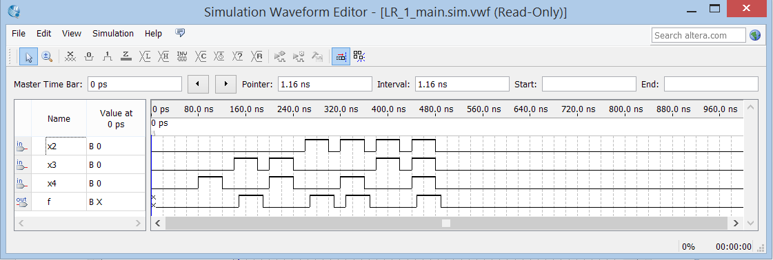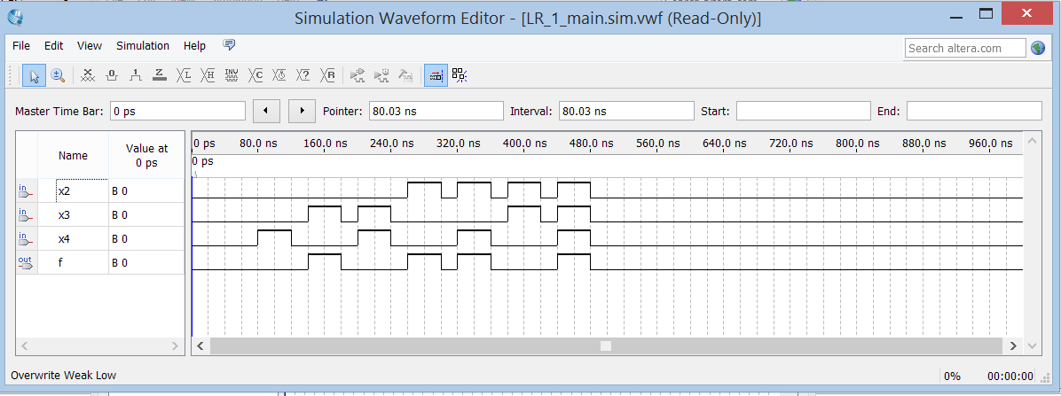 В ходе данной лабораторной работы мы изучили методы построения простейших схем в графическом редакторе Quartus II. Также мы научились строить осциллограммы работы схемы без учёта временных задержек и с их учётом. В дальнейшем, мы изучили представление схем в RLT-viewer и определять по ним правильность построения нашей схемы по блок-диаграммам или на Verilog. Далее мы научились описывать простейшие схемы на языке Verilog, и работать с ними также, как со схемами из блок-диаграмм. Для схемы на Verilog также были построены осциллограммы работы без учёта задержек и с их учётом. В итоге, все значения из таблицы истинности совпали со значениями выходных сигналов схемы на Verilog и схемы из блок-диаграммы.