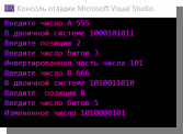 Инвертировать n битов в числе А влево от позиции p, заменить ими m битов числа В, начиная с позиции q.