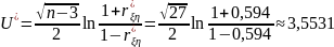 Также проверим гипотезы с помощью преобразования Фишера. Вычислим случайную величину U* (т.к. основная гипотеза H0: p = 0 – отсутствие линейной статистической связи, то условное математическое ожидание M[V|H0] = 0, а значит mV = 0):