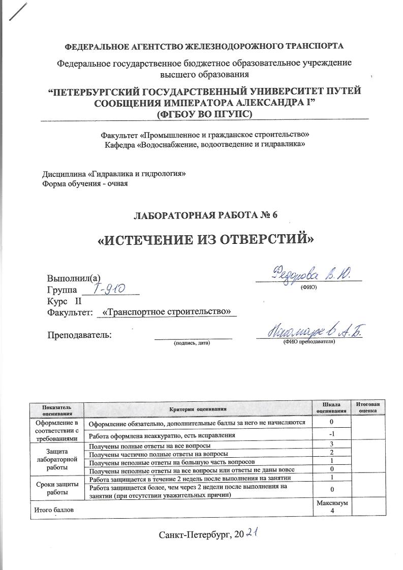 Лабораторная работа «ИСТЕЧЕНИЕ ИЗ ОТВЕРСТИЙ»