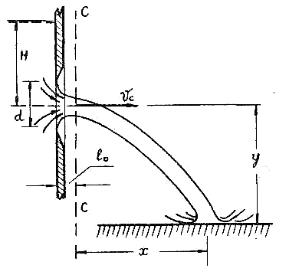 Vc – средняя скорость струи в сжатом сечении (движение в сечении С-С считается прямолинейным и равномерным); у – высота расположения отверстия над