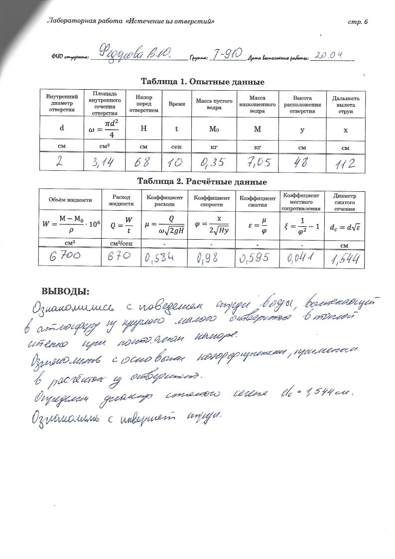 «ИСТЕЧЕНИЕ ИЗ ОТВЕРСТИЙ» Вопросы к защите лабораторной работы