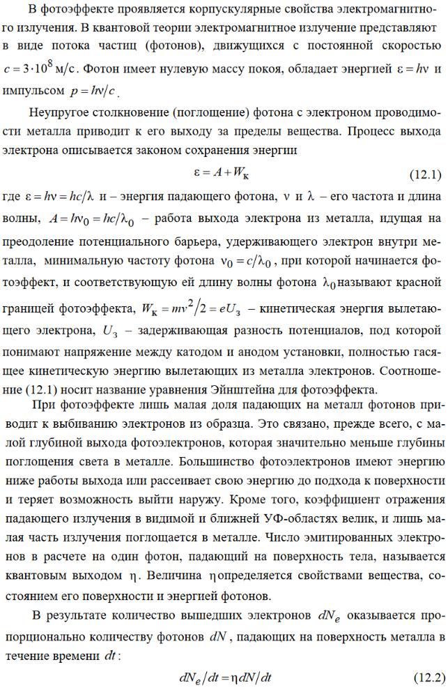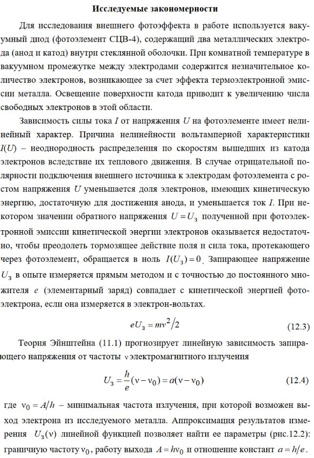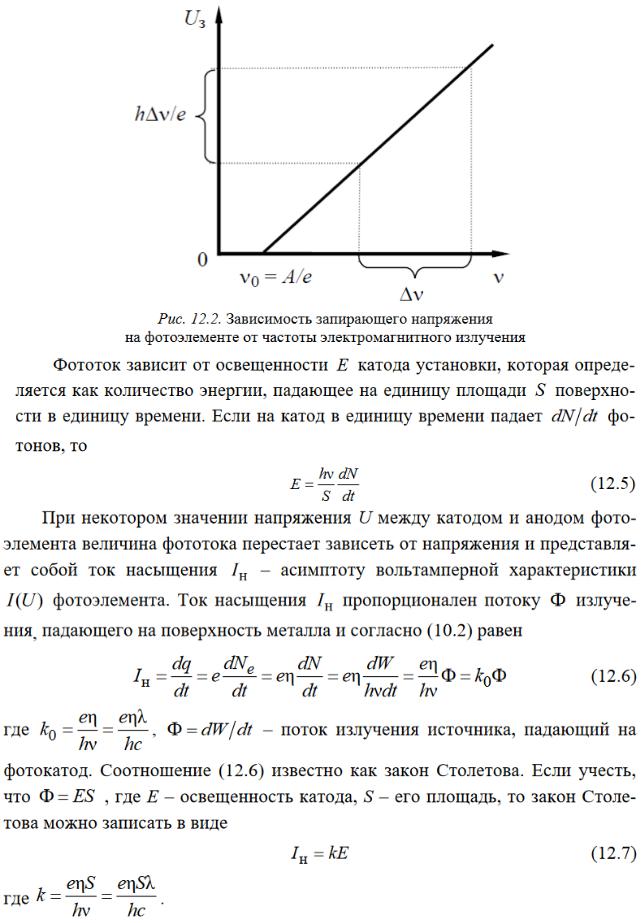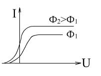Сила фототока зависит от приложенного напряжения при неизменном световом потоке следующим образом. С увеличением напряжения фототок сначала растет, достигая наибольшего значения, получившего название тока насыщения. Сила фототока пропорциональна падающему световому потоку.